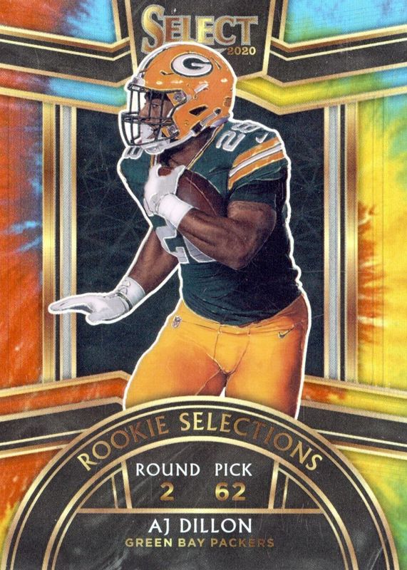 AJ Dillon 2020 Select #23 Rookie Selections - Tie-Dye /25 RAW Price Guide