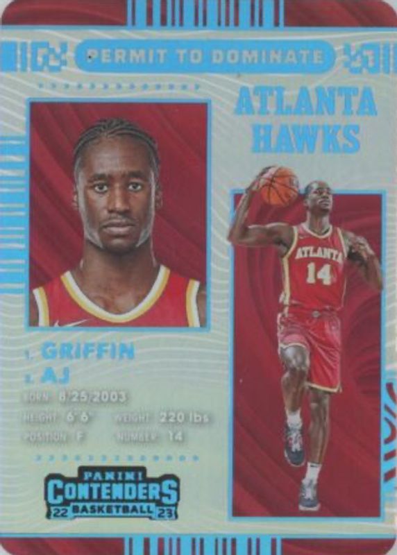 2022-23 Panini Contenders AJ Griffin Permit to Dominate Case Hit #1 ATL Hawks