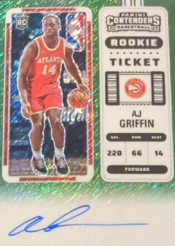 Auctions Ending Soon for AJ Griffin 2022 Contenders #129 Rookie Ticket Auto - Premium Green Shimmer RAW