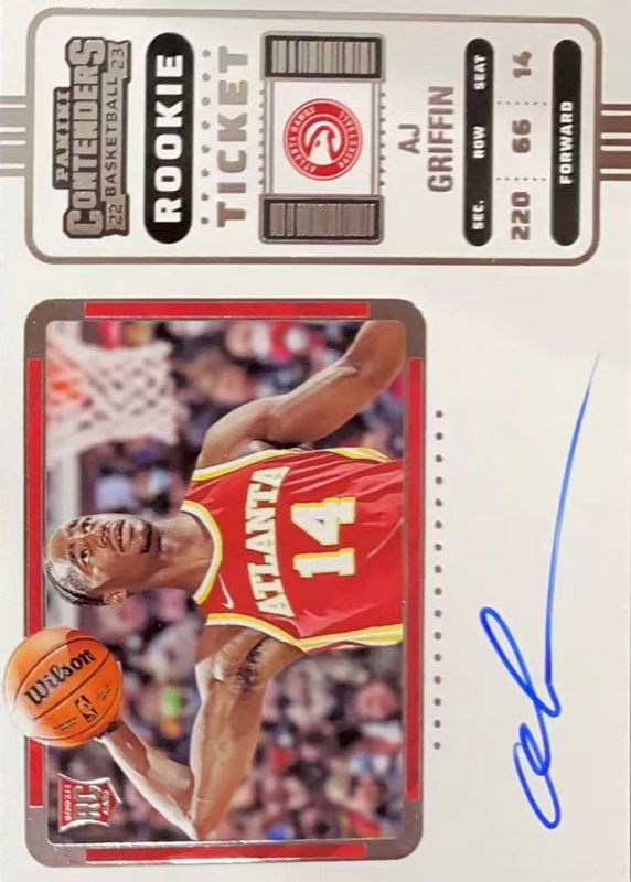 2022-23 Panini Contenders AJ Griffin #129 Hawks Rookie Ticket Auto Variation RC
