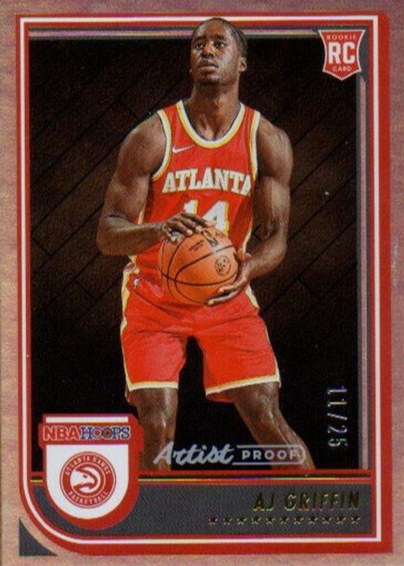 The AJ Griffin 2022 Hoops #246 Artist Proof /25 Rookie card in Raw condition has not changed in price in the last 30 days and was last sold for $29.99 .
