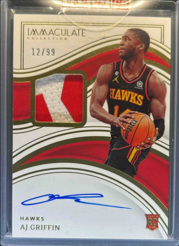 The AJ Griffin 2022 Immaculate #137 Base /99 Rookie card is 1 of 28 AJ Griffin's card variations in the 2022 Immaculate set being tracked by Sports Card Investor, including Red /49, Gold /10, Premium Patch Autographs, Premium Patch Autographs - FOTL, and Premium Patch Autographs - Gold.