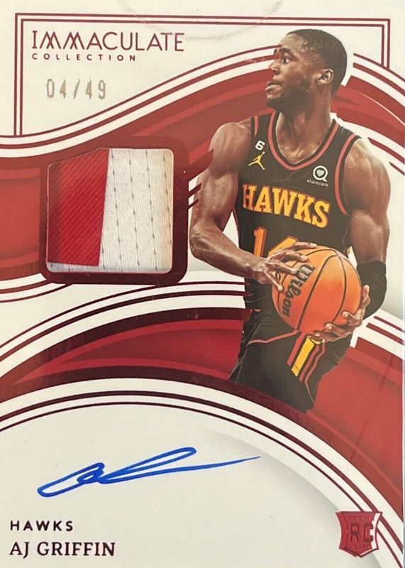 This card is 1 of 28 AJ Griffin's card variations in the 2022 Immaculate set being tracked by Sports Card Investor, including Base /99, Red /49, Gold /10, Premium Patch Autographs, and Premium Patch Autographs - FOTL.