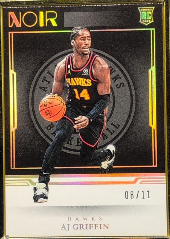 This card is 1 of 19 AJ Griffin's card variations in the 2022 Noir set being tracked by Sports Card Investor, including Association Edition /99, Icon Edition /99, Statement Edition /25, Association Edition - Holo Silver /49, and Icon Edition - Holo Silver /49.