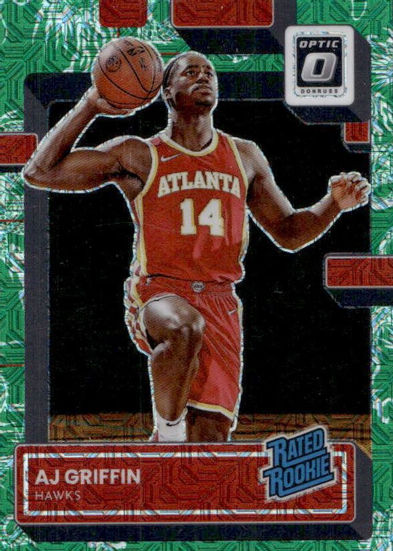 This card is 1 of 62 AJ Griffin's card variations in the 2022 Optic set being tracked by Sports Card Investor, including Base, Checkerboard, Choice Red & Green, Fast Break, and Green Shock.