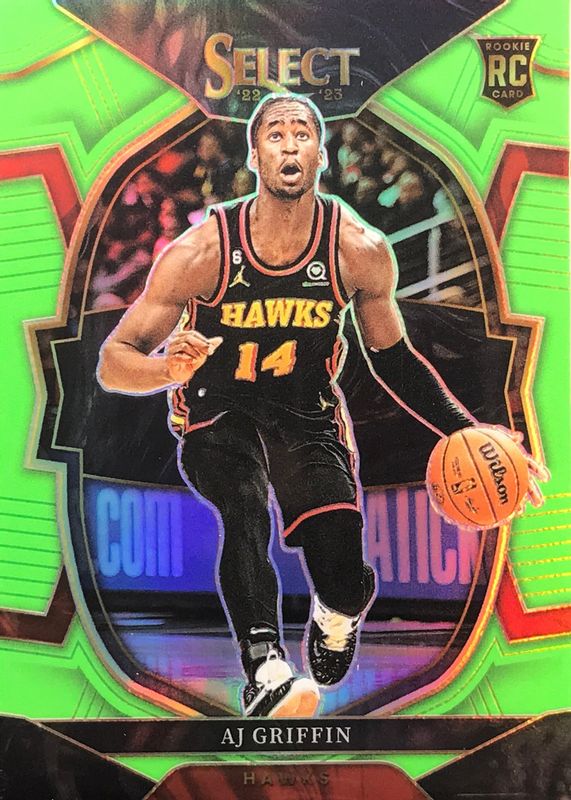 2022-23 Select AJ Griffin Neon Green Prizm Concourse Rookie RC #29/75 Hawks