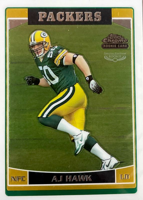 The AJ Hawk 2006 Topps Chrome #222 Base Rookie card in Raw condition has moved down -$0.27 (-12.0%) in the last 30 days and was last sold for $1.98 .