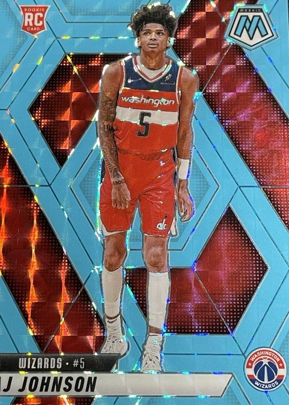 2024-25 Panini Mosaic AJ Johnson Blue Fluorescent RC /75 #215 Wizards