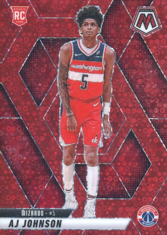 This card is 1 of 66 AJ Johnson's card variations in the 2024 Mosaic set being tracked by Sports Card Investor, including Base, Choice Red & Green, Fast Break, Green, and Green Ice.
