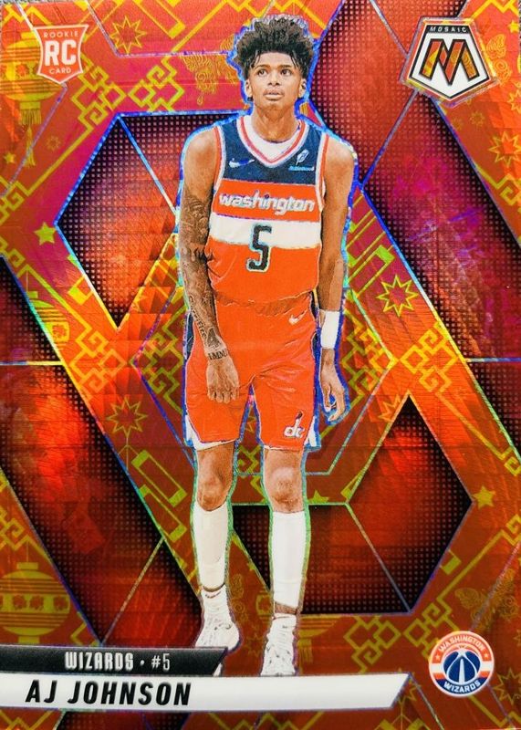 This card is 1 of 66 AJ Johnson's card variations in the 2024 Mosaic set being tracked by Sports Card Investor, including Base, Choice Red & Green, Fast Break, Green, and Green Ice.
