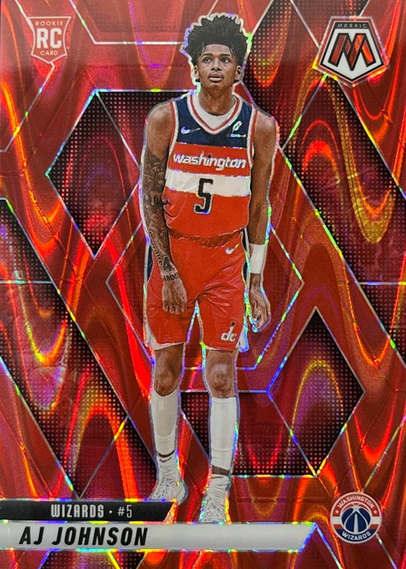 This card is 1 of 66 AJ Johnson's card variations in the 2024 Mosaic set being tracked by Sports Card Investor, including Base, Choice Red & Green, Fast Break, Green, and Green Ice.