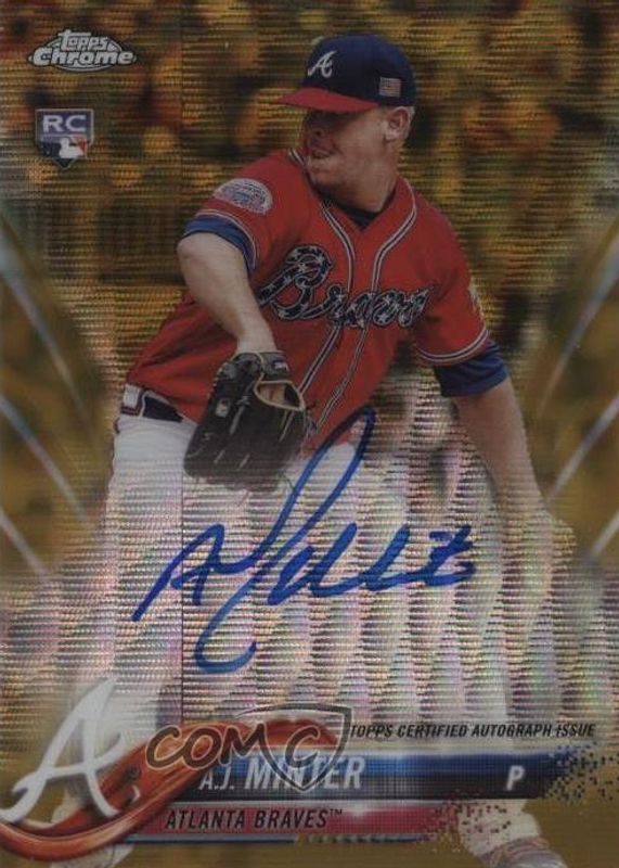 AJ Minter's Baseball cards are available in at least 12 sets. AJ Minter's biggest 7-day price movers are 2018 Topps Chrome #RA-AM Rookie Auto - Gold Wave Refractor /50, 2018 Topps Chrome Sapphire Edition #514 Base, and 2018 Topps Living #119 Base (Print Run: 3,994).