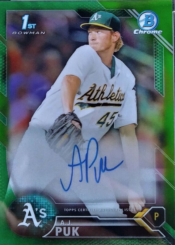 Best Prices Available For Sale of AJ Puk 2016 Bowman Draft #CDA-AP Chrome DP Auto - Green Refractor /99 (1st)