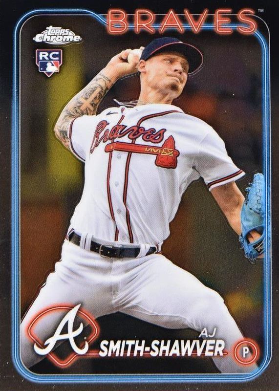 This card is 1 of 60 AJ Smith-Shawver's card variations in the 2024 Topps Chrome set being tracked by Sports Card Investor, including Negative Refractor, Pink Refractor, Prism Refractor, RayWave Refractor, and Refractor.
