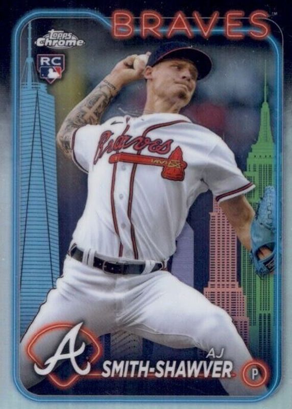 This card is 1 of 60 AJ Smith-Shawver's card variations in the 2024 Topps Chrome set being tracked by Sports Card Investor, including Base, Negative Refractor, Pink Refractor, Prism Refractor, and RayWave Refractor.