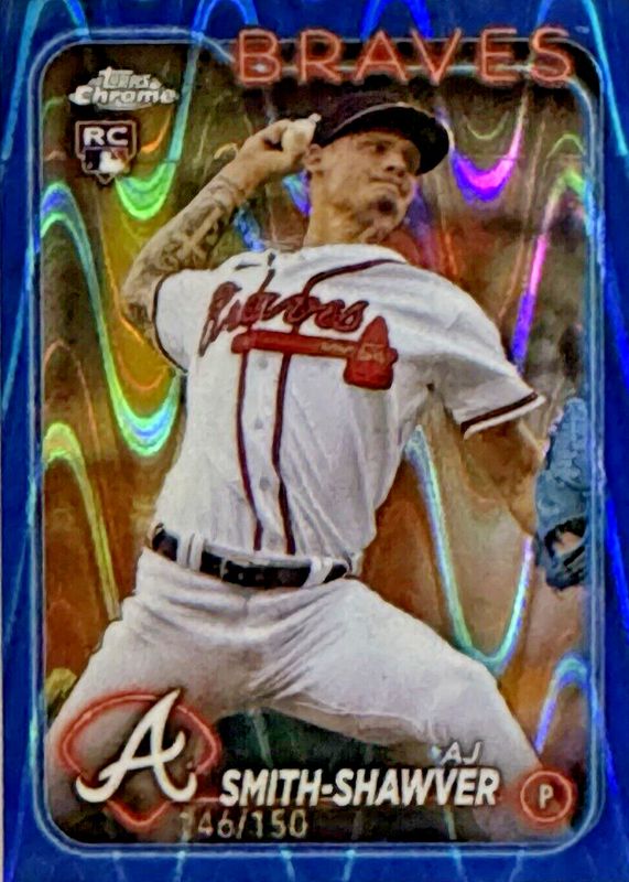 2024 Topps Chrome Baseball AJ Smith-Shawver Blue Raywave RC /150 #19 Braves
