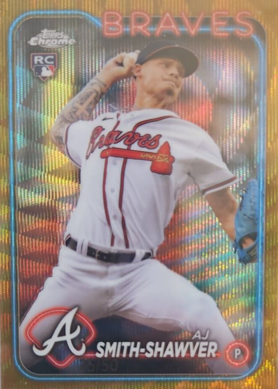 This card is 1 of 60 AJ Smith-Shawver's card variations in the 2024 Topps Chrome set being tracked by Sports Card Investor, including Base, Negative Refractor, Pink Refractor, Prism Refractor, and RayWave Refractor.