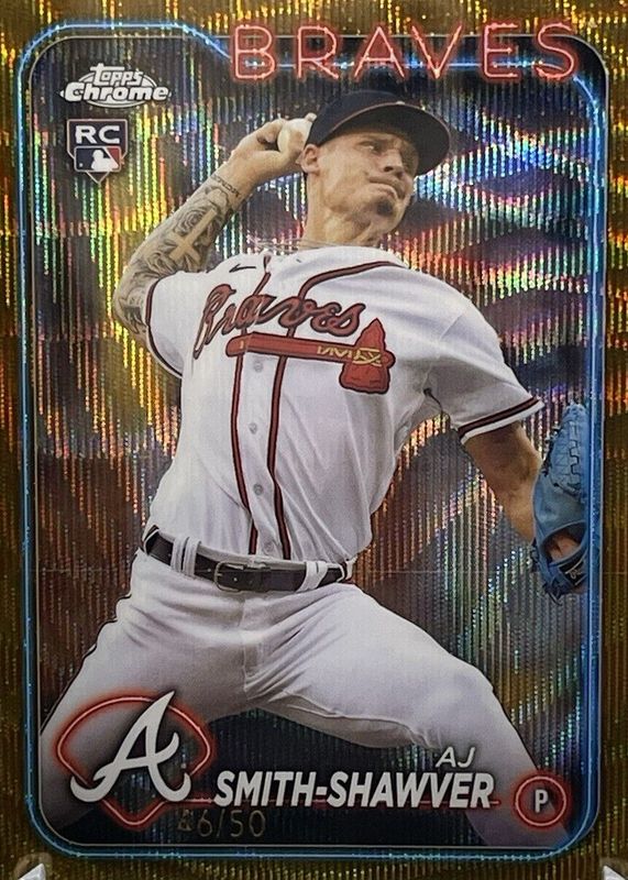This card is 1 of 60 AJ Smith-Shawver's card variations in the 2024 Topps Chrome set being tracked by Sports Card Investor, including Base, Negative Refractor, Pink Refractor, Prism Refractor, and RayWave Refractor.