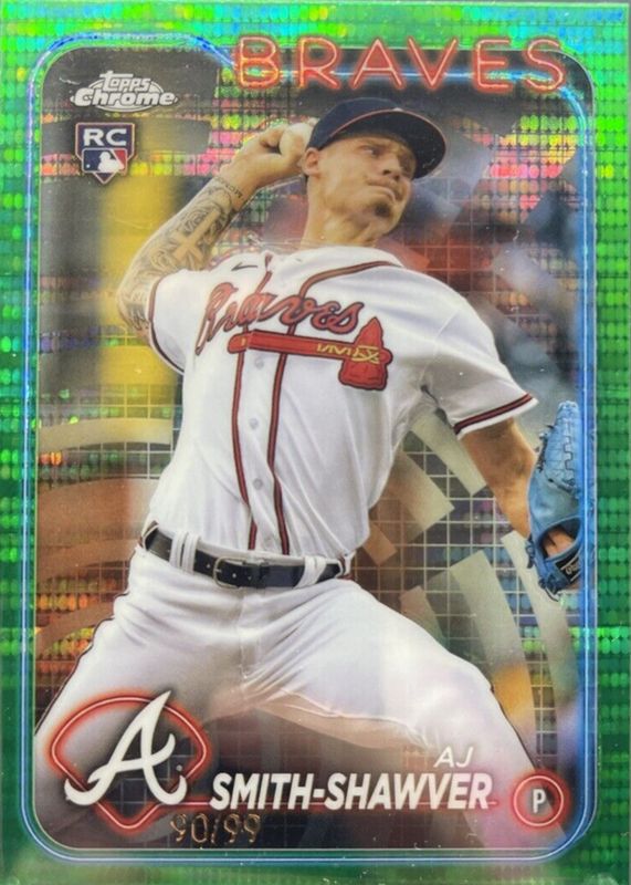 This card is 1 of 60 AJ Smith-Shawver's card variations in the 2024 Topps Chrome set being tracked by Sports Card Investor, including Base, Negative Refractor, Pink Refractor, Prism Refractor, and RayWave Refractor.