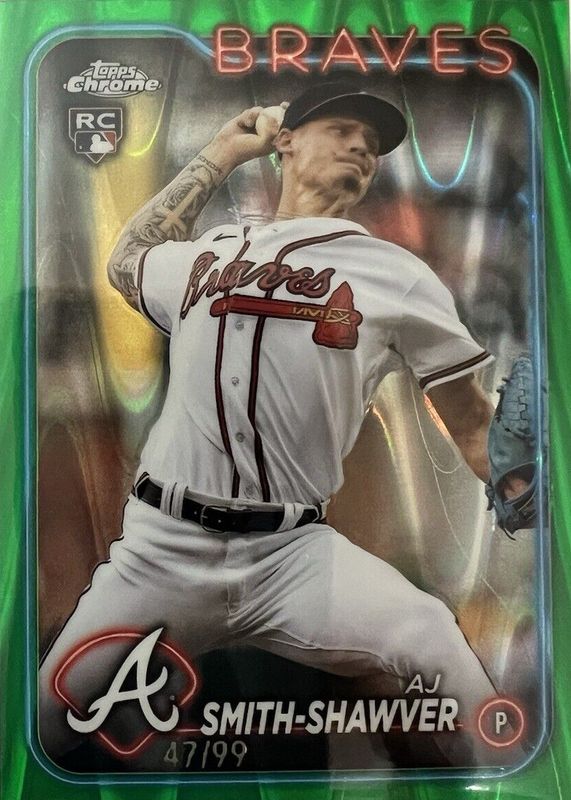 This card is 1 of 60 AJ Smith-Shawver's card variations in the 2024 Topps Chrome set being tracked by Sports Card Investor, including Base, Negative Refractor, Pink Refractor, Prism Refractor, and RayWave Refractor.