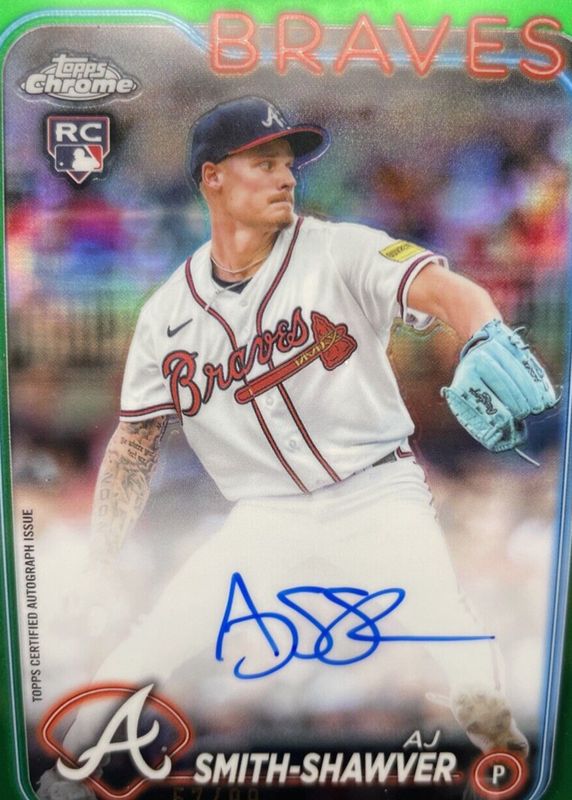 2024 Topps Chrome AJ Smith-Shawver Rookie Auto Green Refractor RC #/99 #RA-AJS