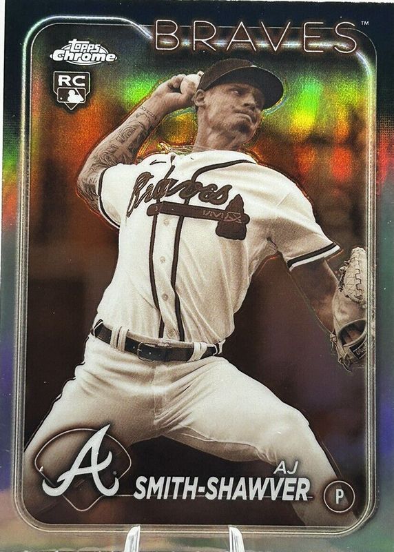 This card is 1 of 60 AJ Smith-Shawver's card variations in the 2024 Topps Chrome set being tracked by Sports Card Investor, including Base, Negative Refractor, Pink Refractor, Prism Refractor, and RayWave Refractor.