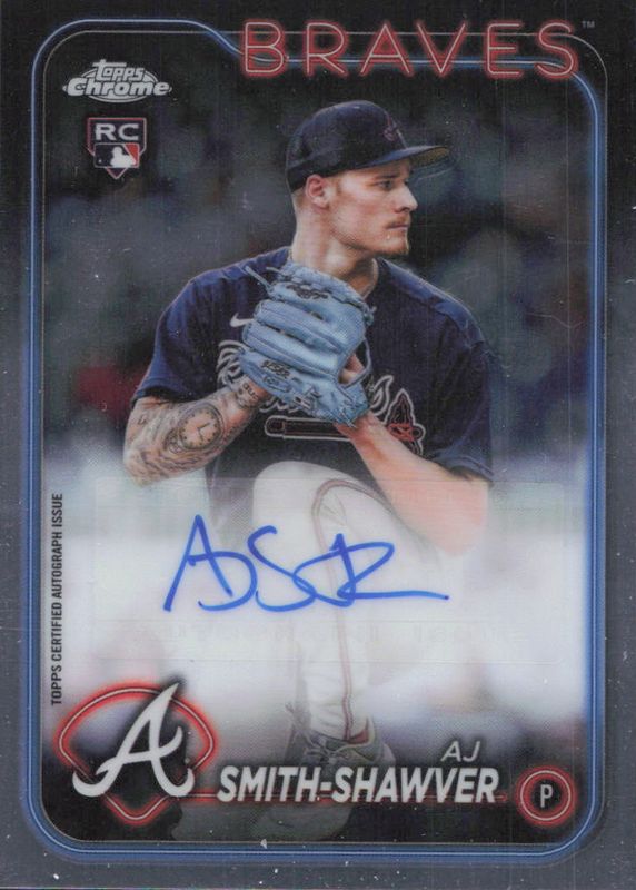 The AJ Smith-Shawver 2024 Topps Chrome Update #AC-AS Autographs Rookie card in Raw condition has moved down -$7.50 (-44.1%) in the last 30 days and was last sold for $9.50 .