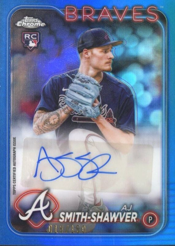 2024 Topps Chrome Update AJ Smith-Shawver Auto RC Blue Refractor #/150 Braves