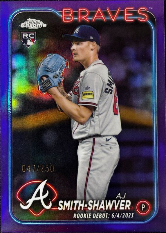 2024 Topps Chrome Update AJ SMITH-SHAWVER Purple Refractor /250 RC Braves #USC87