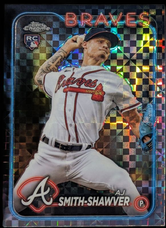 The AJ Smith-Shawver 2024 Topps Chrome #19 X Fractor Rookie card is 1 of 60 AJ Smith-Shawver's card variations in the 2024 Topps Chrome set being tracked by Sports Card Investor, including Base, Negative Refractor, Pink Refractor, Prism Refractor, and RayWave Refractor.