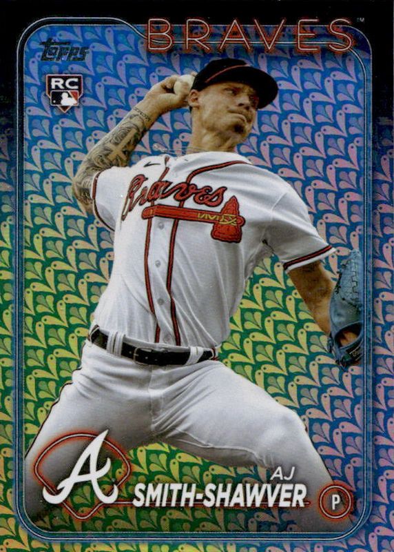 This card is 1 of 34 AJ Smith-Shawver's card variations in the 2024 Topps set being tracked by Sports Card Investor, including Base, 582 Montgomery Club, All-Star Game Exclusive, Aqua, and Eggs.
