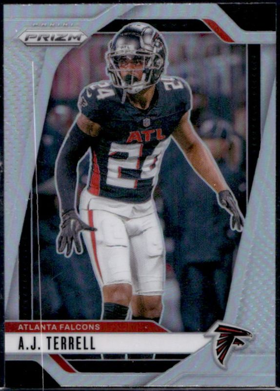 The AJ Terrell 2024 Prizm #15 Silver card is 1 of 83 AJ Terrell's card variations in the 2024 Prizm set being tracked by Sports Card Investor, including Base, Choice Blue Yellow Green, Choice Silver, Disco, and Green.