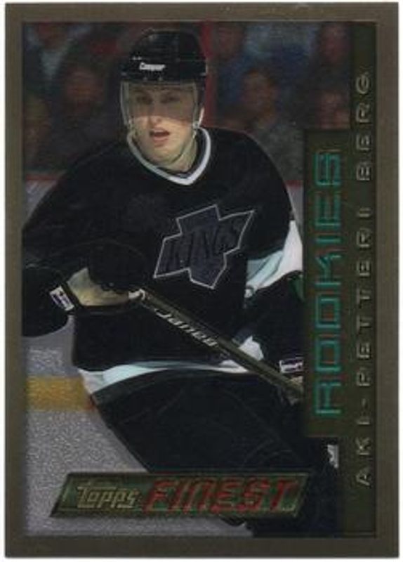 The Aki Berg 1995 Topps Finest #138 Base Rookie card is 1 of 2 Aki Berg's card variations in the 1995 Topps Finest set being tracked by Sports Card Investor, including Refractor.