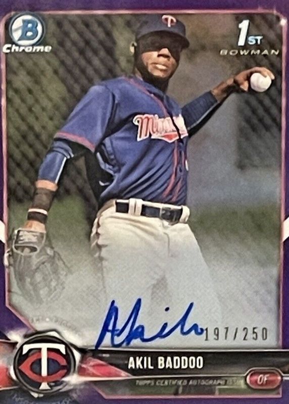 2018 Bowman Chrome Prospects AUTO AKIL BADDOO! PURPLE Refractor #'d /250! RC.