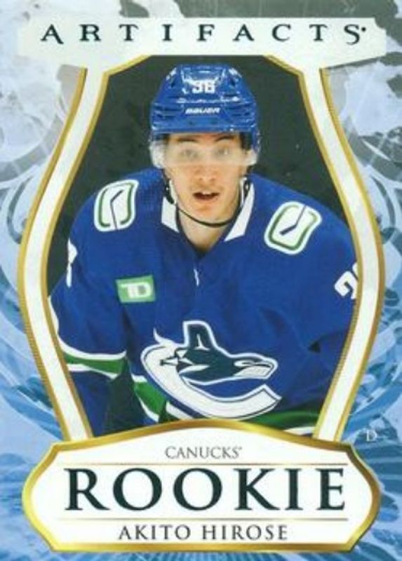 The Akito Hirose 2023 Upper Deck Artifacts #181 Turquoise Rookie card is 1 of 28 Akito Hirose's card variations in the 2023 Upper Deck Artifacts set being tracked by Sports Card Investor, including Base /999, Leather, Plexi, Wood, and Ruby /499.