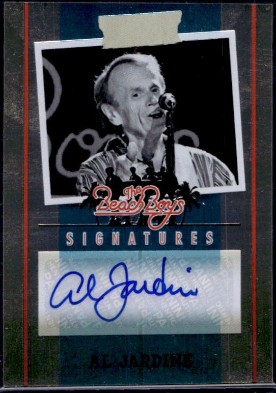 The Al Jardine 2013 Panini The Beach Boys #13 Signatures Autographs /65 card is 1 of 98 Al Jardine's card variations in the 2013 Panini The Beach Boys set being tracked by Sports Card Investor, including #107 Base, #96 Base, #71 Base, #58 Base, and #48 Base.