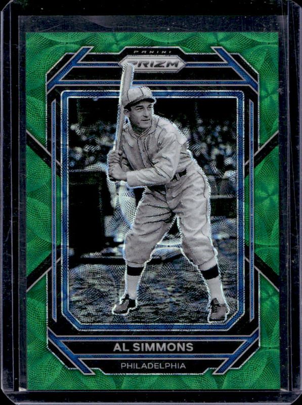 The Al Simmons 2023 Prizm #220 Green Scope /75 card is 1 of 26 Al Simmons' card variations in the 2023 Prizm set being tracked by Sports Card Investor, including Base, Blue Ice, Giraffe, Green Ice, and Hyper.