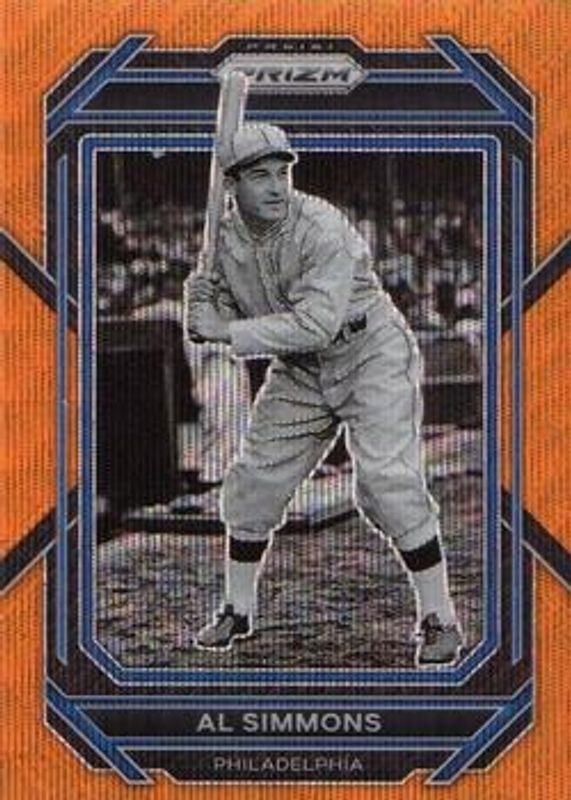 The Al Simmons 2023 Prizm #220 Orange Wave /50 card is 1 of 26 Al Simmons' card variations in the 2023 Prizm set being tracked by Sports Card Investor, including Base, Blue Ice, Giraffe, Green Ice, and Hyper.