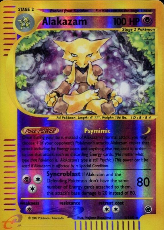 2002 Pokemon Expedition Alakazam Reverse Holo 1/165 NM CLEAN