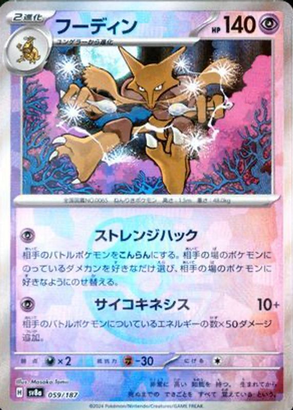 Alakazam 2024 Japanese Scarlet & Violet: Terastal Fest ex #059/187 Master Ball Reverse Holo RAW TCG (LIGHTLY PLAYED) Price Guide