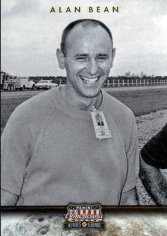 The Alan Bean 2012 Panini Americana Heroes & Legends #48 Base card is 1 of 13 Alan Bean's card variations in the 2012 Panini Americana Heroes & Legends set being tracked by Sports Card Investor, including Elite Signatures /165, Bronze Proof /100, Elite Materials Bronze Proof /99, Gold Proof /50, and Silver Proof /50.
