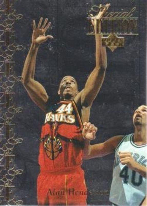 The Alan Henderson 1995 Upper Deck #SE92 Special Edition Gold Rookie card is 1 of 5 Alan Henderson's card variations in the 1995 Upper Deck set being tracked by Sports Card Investor, including Base, Electric Court, Electric Court Gold, and Special Edition.