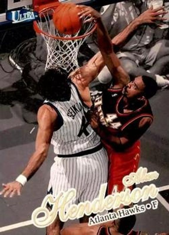 The Alan Henderson 1997 Fleer Ultra #170G Gold Medallion card is 1 of 4 Alan Henderson's card variations in the 1997 Fleer Ultra set being tracked by Sports Card Investor, including Base, Platinum Medallion /100, and Masterpiece /1.
