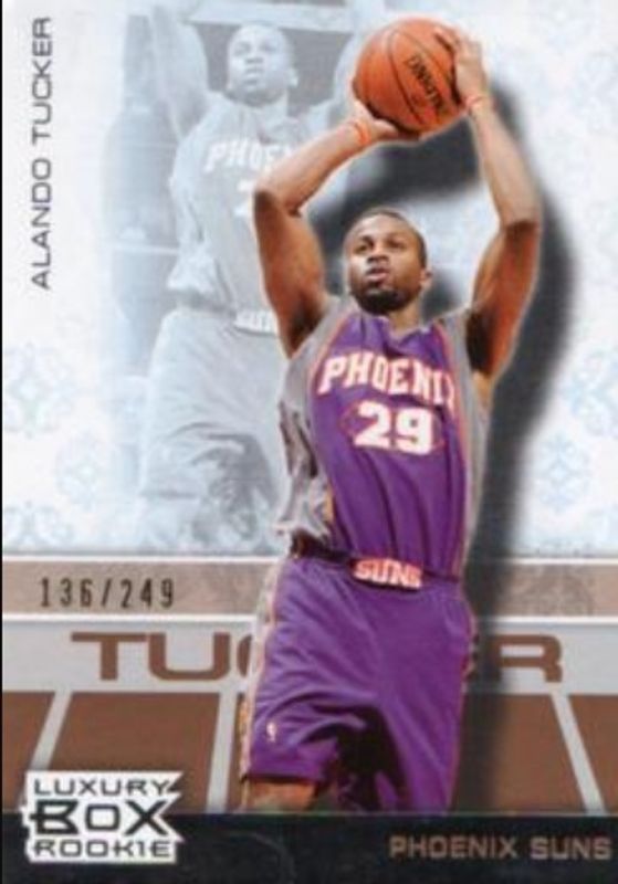 The Alando Tucker 2007 Topps Luxury Box #76 Bronze /249 Rookie card is 1 of 13 Alando Tucker's card variations in the 2007 Topps Luxury Box set being tracked by Sports Card Investor, including Base Rookie /669, Silver /75, Gold /1, Platinum /1, and Rookie Relics /499.