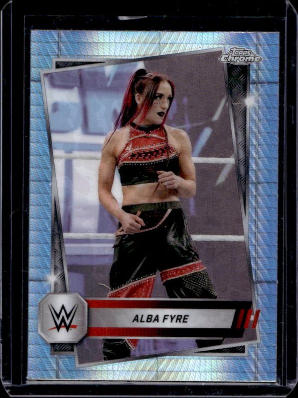 The Alba Fyre 2025 Topps Chrome WWE #88 Prism Refractor card is 1 of 61 Alba Fyre's card variations in the 2025 Topps Chrome WWE set being tracked by Sports Card Investor, including Base, Black & Gold Refractor, Geometric Refractor, Neon Green & Black Refractor, and Pink Shimmer Refractor.
