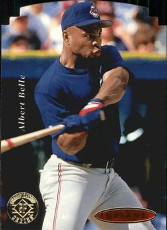 The Albert Belle 1995 SP Championship #145 Die Cuts card is 1 of 4 Albert Belle's card variations in the 1995 SP Championship set being tracked by Sports Card Investor, including Base, Destination Fall Classic, and Destination Fall Classic Die Cuts.