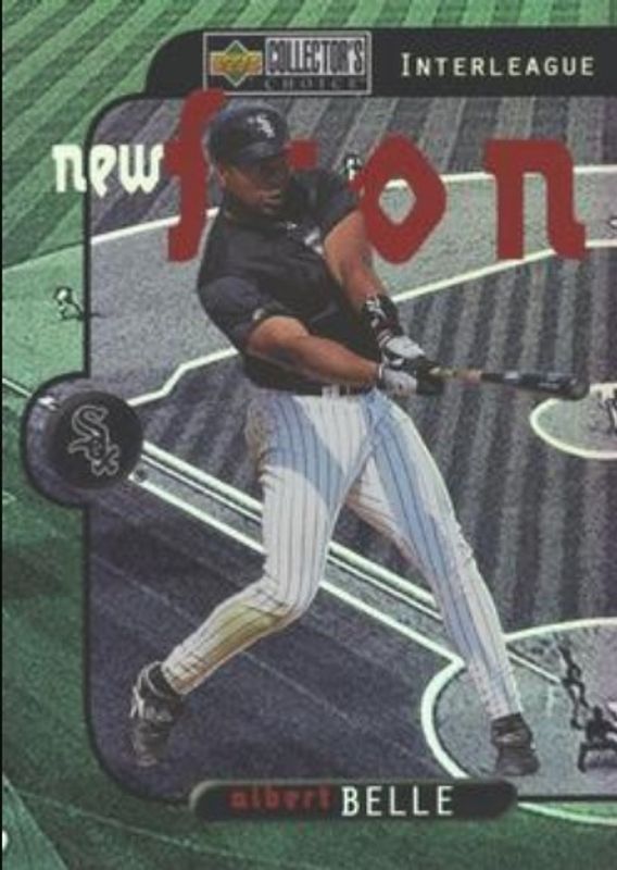 The Albert Belle 1997 Upper Deck Collector's Choice #NF25 New Frontier card is 1 of 19 Albert Belle's card variations in the 1997 Upper Deck Collector's Choice set being tracked by Sports Card Investor, including #329 Base, #76 Base, #7 All Star Connection, #329 Box Toppers, and #2 Memorable Moments.