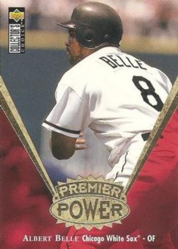 The Albert Belle 1997 Upper Deck Collector's Choice #PP4 Premier Power Gold card is 1 of 19 Albert Belle's card variations in the 1997 Upper Deck Collector's Choice set being tracked by Sports Card Investor, including #329 Base, #76 Base, #7 All Star Connection, #329 Box Toppers, and #2 Memorable Moments.