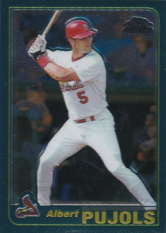 This card is 1 of 4 Albert Pujols' card variations in the 2001 Topps Chrome Traded set being tracked by Sports Card Investor, including Retrofractor, Rookies of the Year (w/Ichiro), and Rookies of the Year - Retrofractor (w/Ichiro).