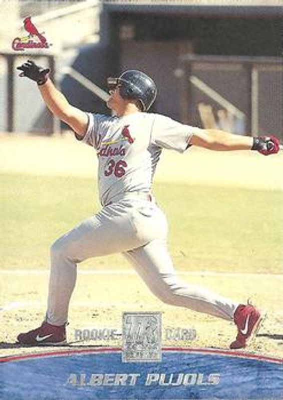 The Albert Pujols 2001 Topps Reserve #103 Base /1500 Rookie card is 1 of 3 Albert Pujols' card variations in the 2001 Topps Reserve set being tracked by Sports Card Investor, including Rookie Autographs, and Rookie Baseballs.